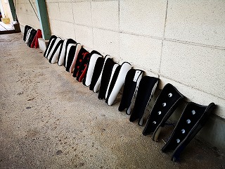 渡り廊下に並ぶシューズとプロテクター。おそらくホッケー部のものだと思う。こんなふうに丁寧に並べてもらえればシューズたちも喜んでいるに違いない。