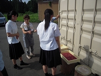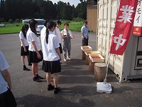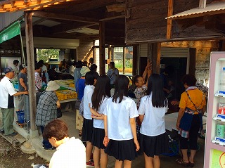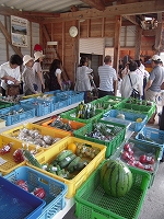 夏休みに朝市体験を実施するために、グループ代表生徒が朝市見学をしました。