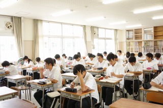 補習後の学習室を覗いてみると、集中して取り組む3年生の姿が見られます。