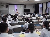 7月5日、運動部の部員向けに、栄養講習会が開かれました。味の素株式会社より中部・北陸エリア販売促進担当の橋本幸尚氏が講師として来られ、「スポーツには水、アミノ酸が大切である」ことや、「試合で力を出し切るための食事」などについて講演をしていただきました。