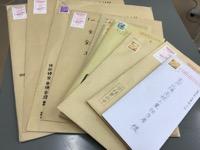 いくつかの封筒にはビジネスマナーとして封筒の左側に「○○在中」と書かれていました。