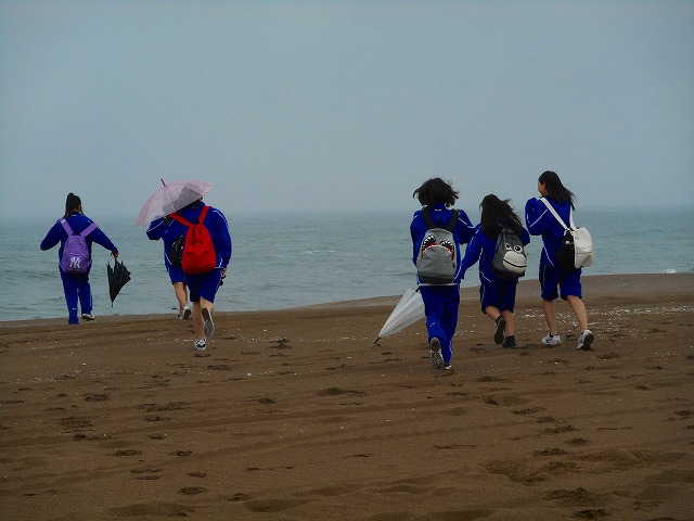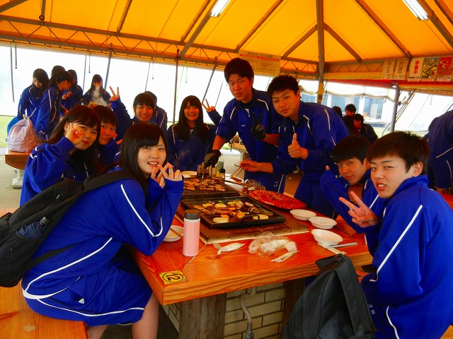 内灘海水浴場の海岸線を歩き、サイクリングターミナルでのバーベキューでクラスの親睦を図りました。