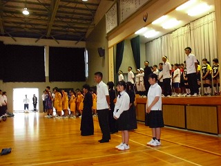 夏休み中に活躍した、北陵生の表彰披露式があり、壇上で1人一言ずつ大会を振り返っての感想を話してもらいました。