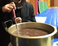 気温も低く、帰宅中に風邪をひかないようにマネージャーが武道場のストーブでおしるこを作って帰宅前に部員達で食べました。