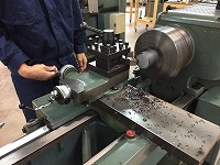2年生はまだまだ旋盤初心者なので、荒削りから仕上げ削りまで、