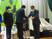 レスリング部、商業同好会、ホッケー部、卓球部の生徒がそれぞれ校長先生から表彰を受けました。