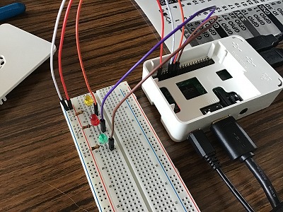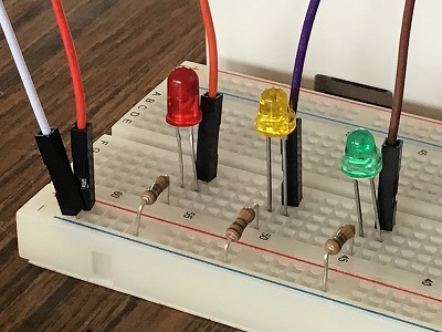 赤・黄色・緑のランプを順番に点灯させるプログラムを作りました。