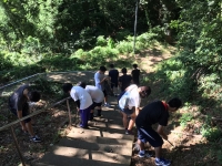 夏季休業最終日にレスリング部で本校通学路、校舎内の清掃をしました。