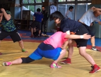 女子レスリング 元日本代表選手に胸を借りる女子部員