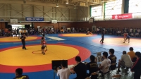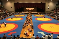 100名を超える男女レスリング選手が集まり、学校or県単位で団体戦を行いました。