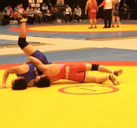 タックルで倒し4ポイント奪取! 続けざまにアンクルホールドで加点!