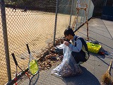 スコップなどで集めて、ゴミ袋に入れます。その後、集めた落ち葉は学校裏へ持っていきました!(森の中なので、生物たちの栄養に!)