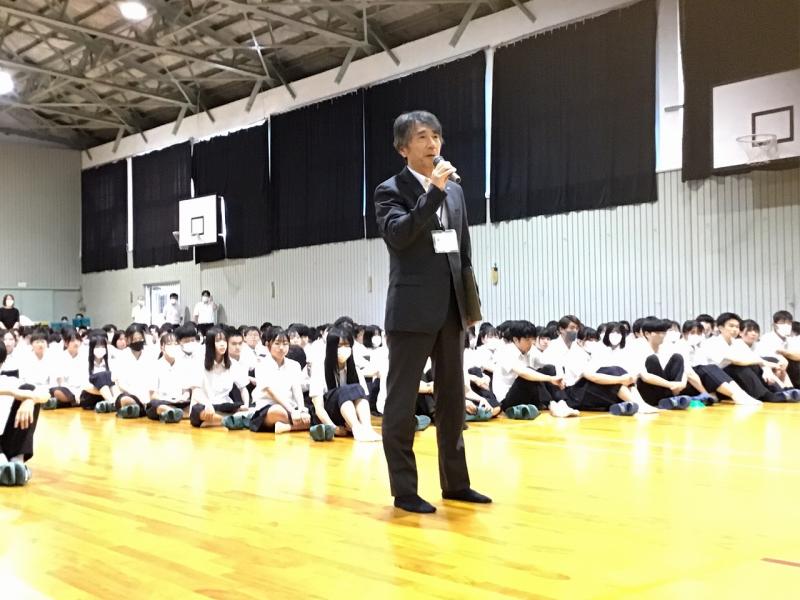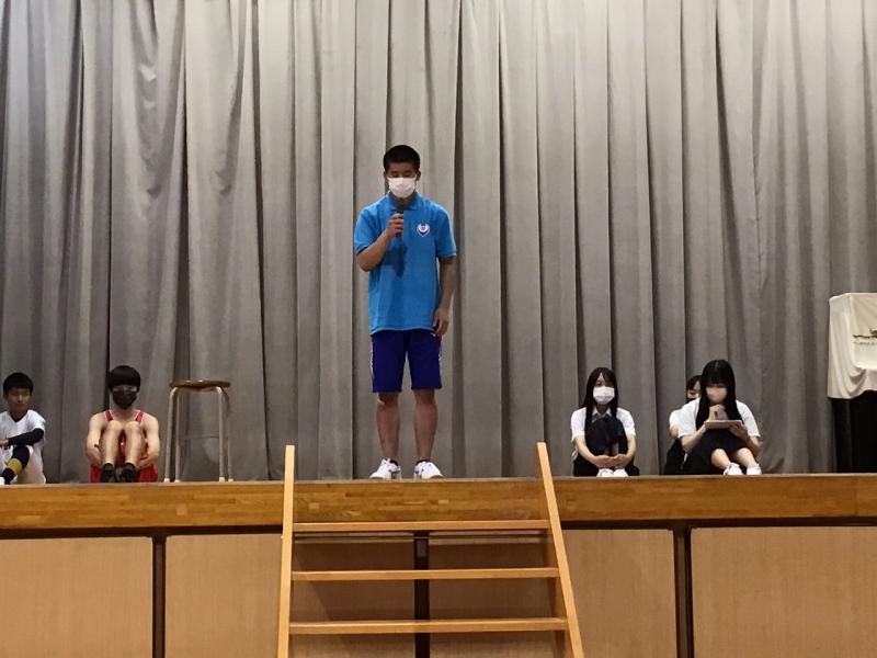 生徒会長の松山さんの熱いエールと校長先生の激励の言葉が送られました。皆真剣に聞き入っていました。