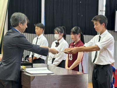 6月10日(月)7限目に総体・総文表彰伝達式&北信越壮行式が行われました。