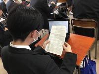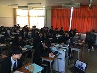 各教室でリモートで行い、総合推進課長からの話、校長先生からのメッセージと