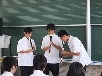『音楽Ⅰ』の授業風景です。グループごとにリコーダーの発表をおこないました。