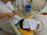 理美容店にあるような洗髪の機械を使って、髪を洗ってみました。ブローも行いました。