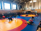 全国グレコに出場する選手はグレコローマンスタイルの練習。出場しない選手はフリースタイルの練習を行い、キルギスの選手がコーチとして技術指導を行いました。