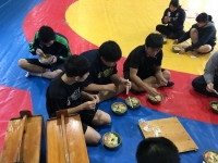 武道場等の大掃除が終了後、来年に向け更に活躍できるよう部員&卒業生で一足早い「年越し蕎麦」を食べました。