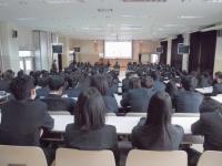 1年生はCSホールで、2年生は各教室でオンライン配信で聴きました。