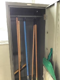 今回の整備は、ロッカーに吊れない長いホウキの丈を切ることです。