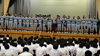表彰式では、表彰者に一人一人に向かって、全校生徒が拍手を送りました。