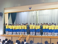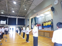 5月24日壮行式を行いました。全校生徒が一同に集まり、校歌や応援歌を歌い、総体に向けての意気込みを高めました!生徒会役員の司会進行を務め、運動部・文化部の代表が、大会に向け決意を述べました。また、永井学校長より激励の言葉を選手たちは真剣な表情で聞いていました。