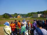 まずは全体で打ち合わせ タケノコ掘りのスコップを準備