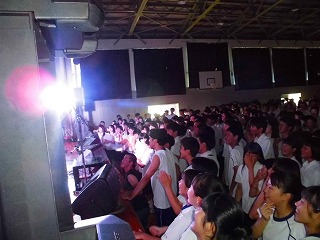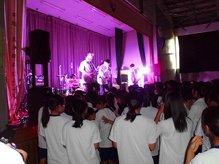 本日6限目、エース・オン・ドンさんを迎え、本校第1体育館で北陵ライブが行われました。暑い体育館の中、熱いライブでみんな盛り上がりました。