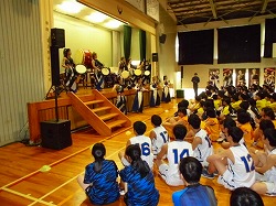 壮行式に引き続き、和太鼓DIA+ による公演がありました。凄い迫力に目が釘付けとなりました。パワーをもらいました。