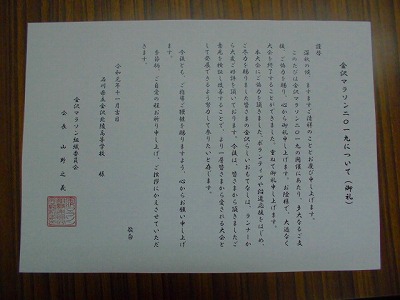 金沢マラソン2019ボランティアお礼状【特活課】