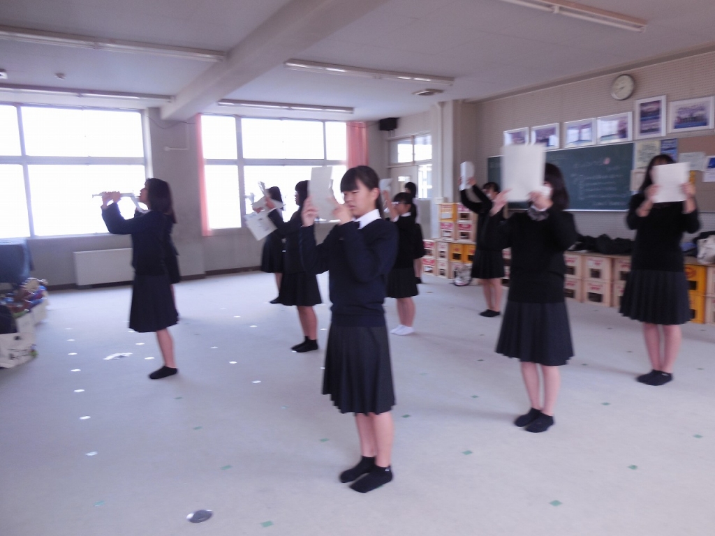 1曲目のマーチングの動きが見えてきました。初めは、自分たちの立ち位置や動きを確認することに時間がかかっていましたが、少しずつ動けるようになってきました。