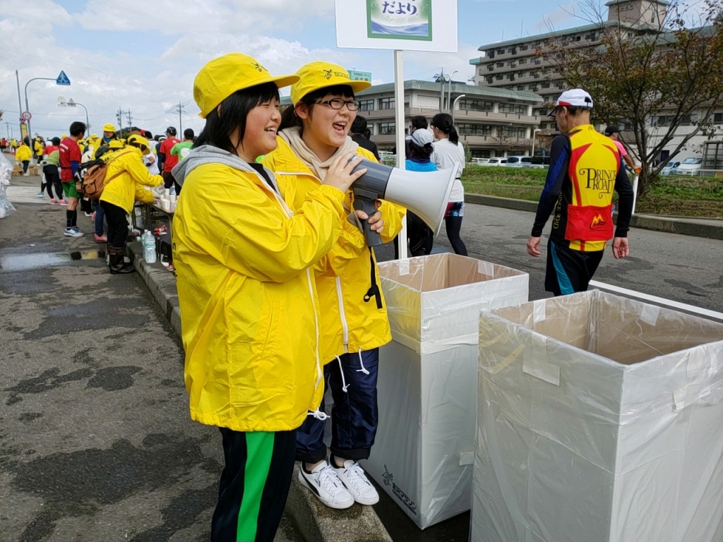金沢マラソンの給水ボランティアに陸上部と一緒に参加させていただきました。
