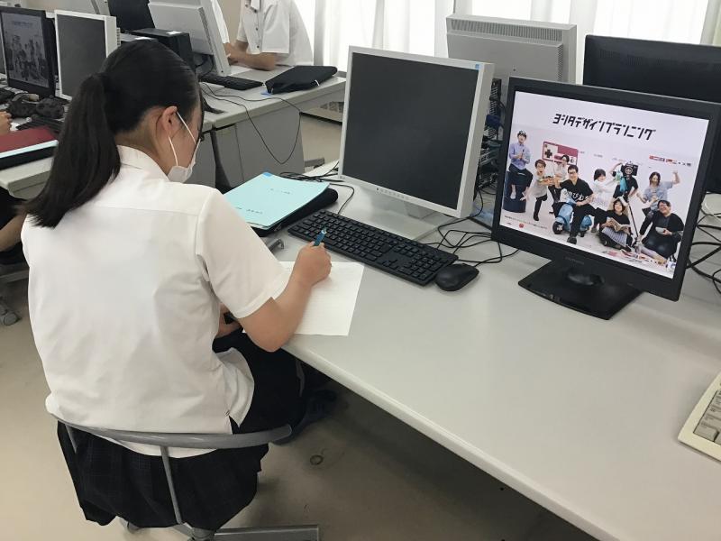 福祉、ビジネス、工業の3系列横断グループも各会場に分かれて参加し、発表・視聴を行いました。