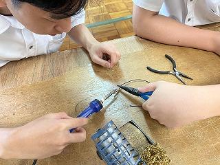 工業系列3年生 実習の授業で、リード線(電源と回路を