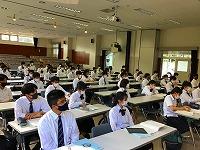 試験に向けて、校長先生から「自分の姿を鏡でみること」「笑顔をつくって表情を確認すること」の点に気を付けることのお話を聞きました。