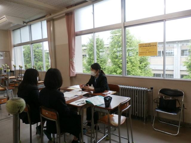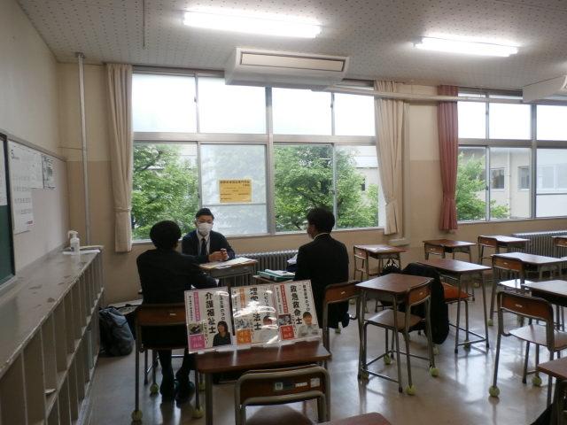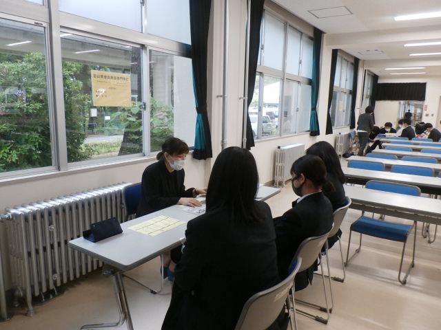 生徒が自由に自分の希望する3つの学校の説明を聞きに移動するという形で行いました。生徒たちは大変真剣に説明を聞き、メモを取っていたのが印象的でした。