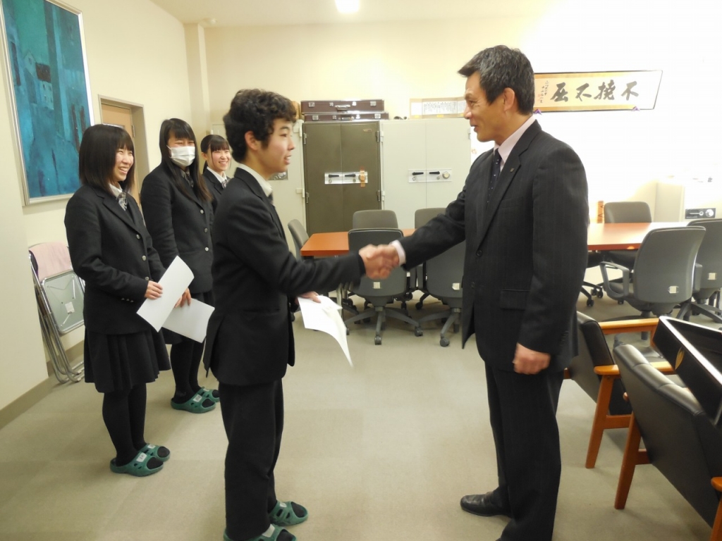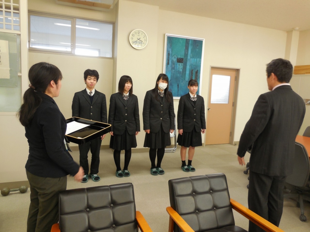 本日、福祉系列3年生4名が介護職員初任者研修修了証を校長先生より受け取りました。