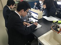 最初は抵抗感をもつ生徒もいましたが、次第に慣れ、意欲的に解剖・観察をおこなっていました。