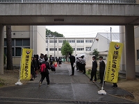 生徒会による挨拶運動が始まりました。今年度から11Hから順番に日替りで行うことにしました。あいにくの雨天でしたが、1年生のさわやかな挨拶が飛び交い、すがすがしい気持ちにさせてくれました。