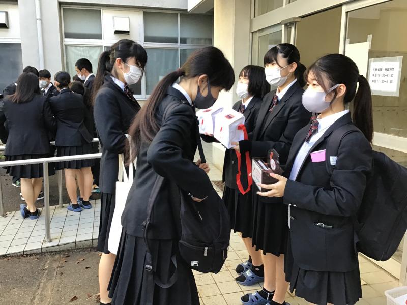 昨日より、朝・昼の時間を活用して赤い羽根共同募金活動を実施しています。