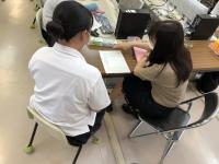 生徒は自分で考えてきた「行動計画」について、担当者との面談をとおして助言をもらい、さらに具体的な行動計画へと改善していきました。夏季休業までのあと2回の授業では、計画した行動に対する準備作業を行う予定です。