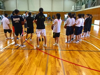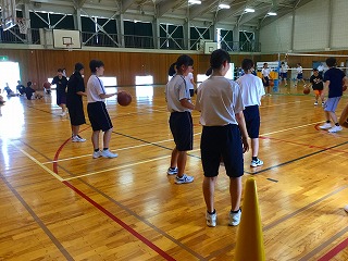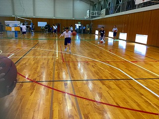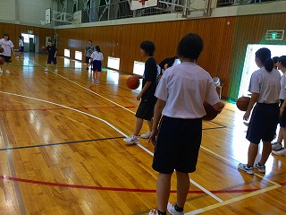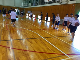 新チームでは、レイアップシュートを重点的に練習しています。3年生も若干名、残っています。夏の大会に向けて、がんばります。