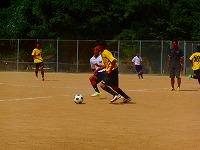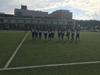暑い中での初戦となり、試合を優位に進めるも、なかなか得点をすることができませんでしたが、後半に1点をとり、決勝へと進みました。