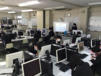 レポート完成をめざして、3年次生は数日前から放課後コンピュータ室に残って作業をする姿が見られました。この日は、皆真剣にレポート内容の最終確認を行っていました。