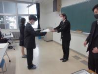 全校生徒には放送で行い、その後、表彰式を視聴覚室にて行いました。