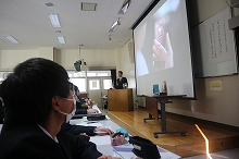 質疑応答を行い、代表生徒から花束を贈呈しました。