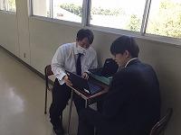 生活福祉・工業・ビジネスの3系列生徒で活動する産学連携グループは「生活を豊かにするための福祉用具開発プロジェクト」と題して研究を行っています。3年目となる今年度、がん患者さんがヨーグルトのふたを開ける際に用いる自助具の製作を進めており、この日は今週末に実施される産業教育フェア(10/28土,イオンモール白山)での発表に向けて、スライドの修正や展示品の確認を行いました。
