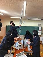 2年コミュニケーション技術の授業も今日で最後となりました。今まで学んだコミ力を駆使して、新聞紙でどれだけ高く積み上げられるかを競う「チームビルディング」をやってみました。いろいろとお互いに作戦を話し合いながら、また、周りのチームの様子を見ながら挑戦。目標は「教室の天井」。