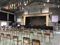 3年生のためのメイン会場の第1体育館です。暗くして光の演出もあるらしいです。